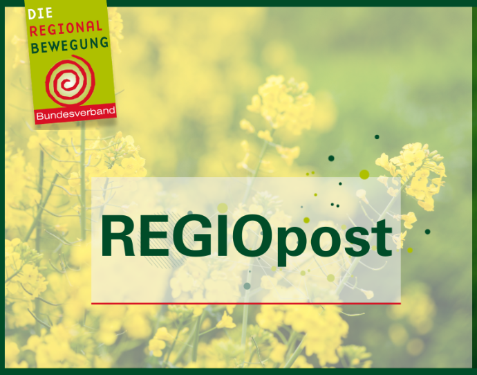 Kompakt, informativ und regelmäßig ca. alle acht bis 10 Wochen informiert der Newsletter der Regionalbewegung, die REGIOpost, über alle wichtigen Themen, Termine, Tipps und Personalien aus der Regiobranche. Lesen Sie Wissenswertes und hoffentlich Anregendes, manchmal sicherlich Aufregendes und hin und wieder etwas zum Schmunzeln per E-Mail. Die REGIOpost, so vielfältig, bunt und lebendig wie die Regionalbewegung!